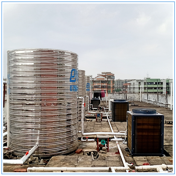 藍(lán)冠機電方案設(shè)計、安裝施工、售后檢修的肇慶華潤水泥工廠宿舍空氣能熱水工程