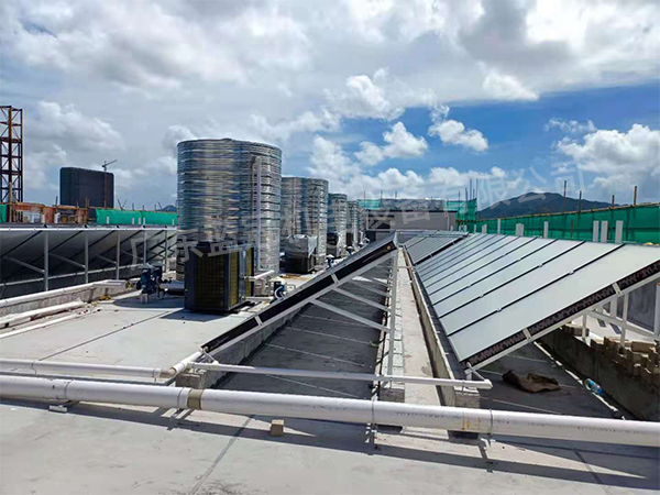 3、在員工宿舍安裝:太陽能平板集熱器150塊、太陽能循環(huán)泵2臺(tái)、10匹空氣能熱泵5臺(tái)、空氣能循環(huán)泵5臺(tái)、加壓泵2臺(tái)、10噸保溫水箱5個(gè)、控制電箱1個(gè)、配件輔材一批等。